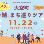 2025年10月6日 / 最終更新日時 : 2025年10月6日 staff オオゾラ探検隊! 【参加者募集】第4回大空町まち巡りツアー 第4回大空町まち巡りツアーを開催します 「大空町に定住をサポートする会」主催の第4回まち巡りツアーを開催します。 *令和6年4月以降に大空町に移住した方、 *大空町に移住を希望している方 上記の方を対象に、ツアー参加者を […]