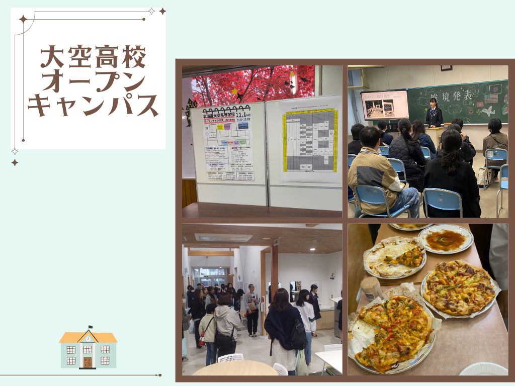 あいにくの天気で、車内では大空町自慢の北海道らしい景色を楽しんでいただけずとても残念…。でしたが、参加者の皆さんから大空高校志望の理由や、休日の過ごし方など、お話をいろいろ伺うことが出来ました。